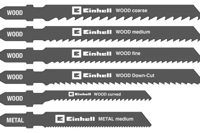 The Original Einhell 10-piece saw blade set is a suitable accessory for various Einhell jigsaws. The set includes 10 different saw blades with T-shank for ideal cutting results. The set includes two saw blades for coarse, medium and fine cuts in wood with a thickness of 3–30 mm. This makes it possible to achieve precise cuts with little tearing, as well as fast and coarse wood cuts. Also included are a jigsaw blade for curve cuts and one for down-cut in 3–30 mm thick wood. In addition, two saw blades for cuts in 1 – 3 mm thick metal are included. All saw blades are particularly efficient thanks to their sanding and can perform high cutting speeds.