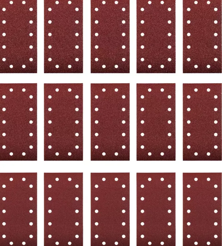 With the original Einhell 15-piece sandpaper set for orbital sanders, large surfaces made of wood or metal can be processed quickly, precisely and cleanly. Thanks to the perforation, the strips are suitable for use with a suction device. The Quick Stick system allows the sandpaper to be changed without the need for tools. Thanks to the different granulations, the right abrasive is available for every project. The sanding strips are suitable for all commercially available orbital sanders with hook-and-loop fastener carrier plates. All sanding strips in the set have the dimensions 115 x 230 mm and a base made of e-paper with Velcro backing. The sandpaper is fully resin bonded twice. The abrasive is made of fine corundum and the strips are perforated 14 times. The set contains 15 strips with three different grains, 5x P40, 5x P80 and 5x P120.