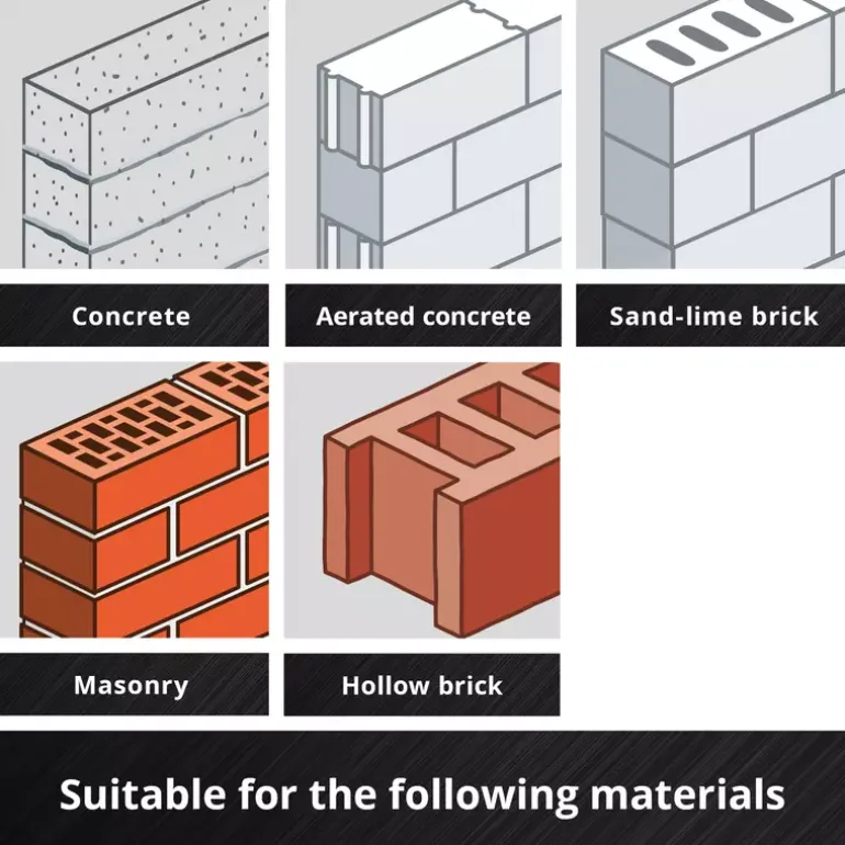 - With SDS Plus receptacle shank for all commercially available rotary hammers