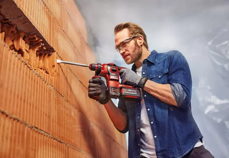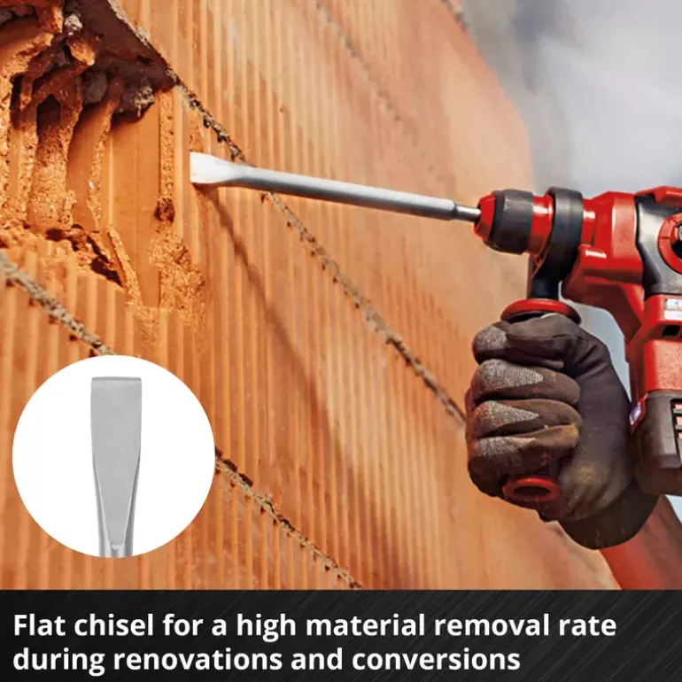 - Chip chisel (250 x 40 mm) for high removal rates in masonry and mortar