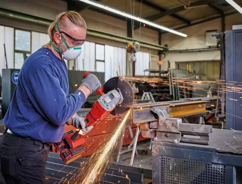 - Metal battery protection protects from flying sparks and dust