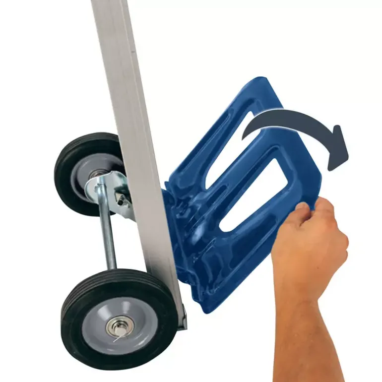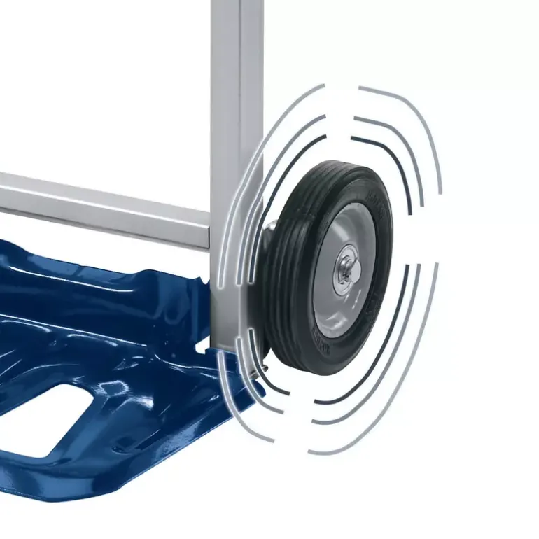 The Einhell BT-HT 90 sack trolley is made of a sturdy aluminium frame and is designed for a maximum load capacity of 90 kilograms while weighing no more than just over five kilograms itself. The sack trolley is therefore highly maneuverable and can also be used in constricted spaces. The sack trolley from Einhell has a lock for the extending handle and a folding base plate. To enable heavy items to be transported with ease, the rubber wheels are fitted with metal bushes.