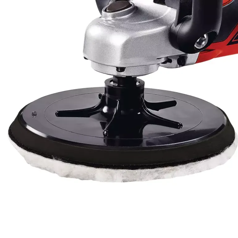For the ambitious do-it-yourselfer the Einhell polishing/sanding machine CC-PO 1100/1 E is the powerful, robust and handy expert polishing and grinding device. It is ideal for polishing of varnished surfaces as well as grinding of wood, plastics and metal. Thanks to its soft grip this device can be handled safely at any time, and operations as polishing of cars can be performed quickly and thoroughly. For varnish care the large additional handle enables best control and precise results. By the finely adjustable electronic speed control the speed of the polishing or grinding attachments can be optimally adapted to the surface being processed. With the practical spindle lock the spindle can be blocked without tools. Thus, the grinding disk on the polisher can be changed quickly and easily. The grinding disk is equipped with a special hook-and-loop fastener in order to fix the polishing and grinding attachments safely on the electric grinder and to prevent entering of dust between disk and grinding paper. The polishing and grinding attachments can be still easily loosened and they can be changed quickly if requested. The comprehensive polishing and grinding accessories consist of 1 foam attachment for e.g. car polishing, 2 synthetic polishing caps and grinding paper disks of 60, 80 and 120 granulation with 2 of each. The polishing and grinding device is delivered in a practical stowage case of robust plastics.