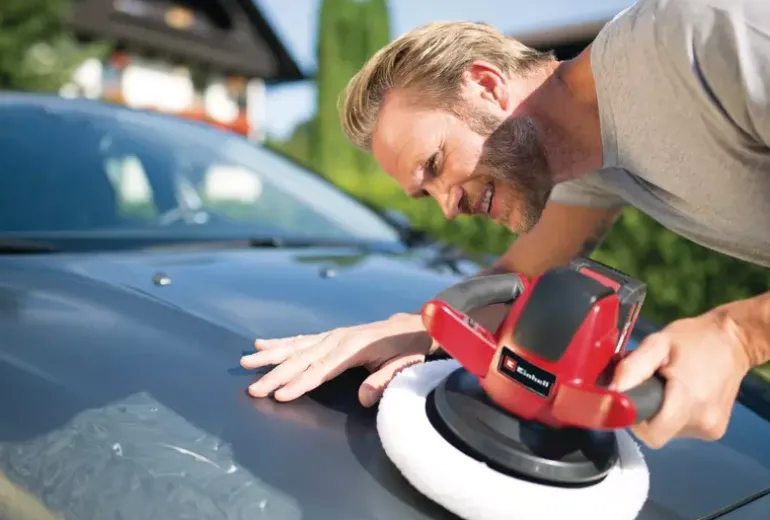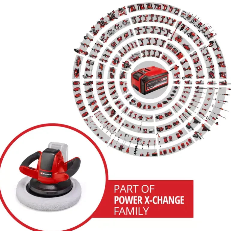 Use the Einhell CE-CB 18/254 Li – Solo cordless car polishing machine to quickly polish your car to a mirror finish. The secret: Flexibility with freedom to maneuver while working, thanks to operation with a high-performance lithium-ion rechargeable battery. The battery is a member of the innovative Power X-Change family from Einhell and can be used in all the devices from the system series. For a long service life the polishing machine is user-friendly and robust in design, while the Softgrip contributes to comfortable operation with minimum strain and a perfectly firm hold. The powerful 2,500 revolutions per minute and the polishing disk with a diameter of 254 millimeters make it a highly effective tool for polishing and sprucing up the vehicle. For safety there is an easily accessible ON/OFF switch and overload protection. First the polishing agent is applied to the paint surface with the textile polishing bonnet. Then the synthetic polishing bonnet is used to produce a long-lasting shine. The polishing bonnets are included with the product. The required rechargeable battery and charger can be purchased separately if required.