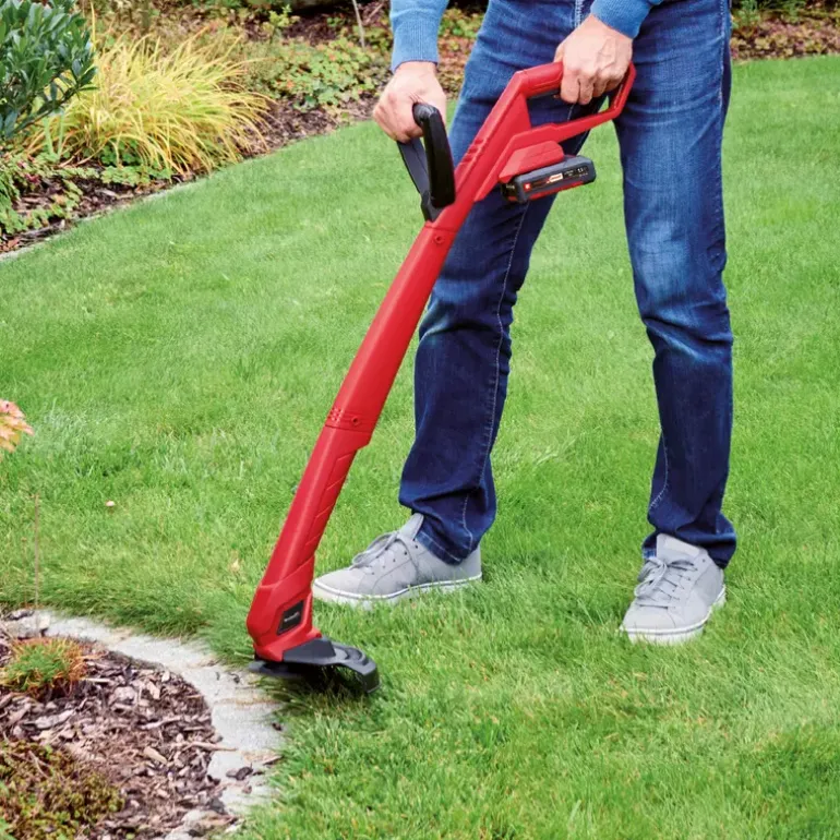 The Einhell cordless lawn trimmer GC-CT 18/24 Li P is a handy helper in the garden with its low weight of about 1.2 kg and the adjustable additional handle. With a cutting width of 24 cm and 8,500 rpm, it efficiently trims edges and tight spots.