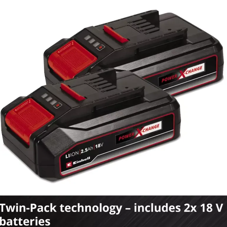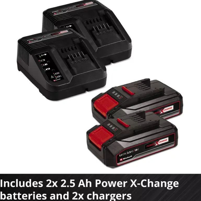 - Supplied with 2x 2,5Ah battery and 2x high-speed charger