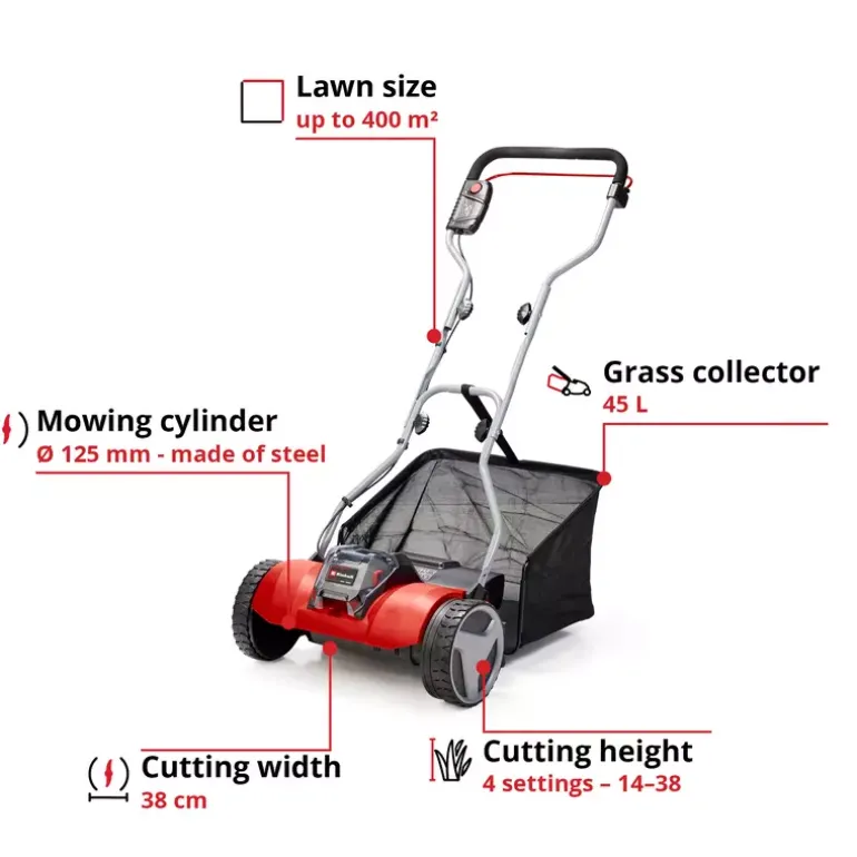 - 4 stage cutting height adjustment 14-38 mm (14|23|32|38mm)