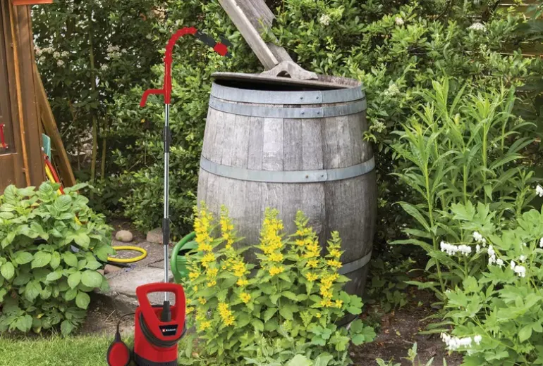The rain barrel pump GE-SP 3546 RB is a high-quality, reliable and powerful device designed specifically for the extraction of water from rain barrels and cisterns. By means of a continuously adjustable float switch, the robust device can be set to continuous operation or to a certain switch-on and switch-off level. The pump has a flexible gooseneck with stopcock for individual positioning of the garden hose, as well as a rain barrel holder, which allows the pump to be attached to the rain barrel. The GE-SP 3546 RB allows the extraction of impurities up to 2.5 mm particle size. Its durable pump housing made of impact-resistant plastic makes it extremely robust. It has a carrying handle for easy transport. Thanks to the integrated cable reel and storage compartment for extension pipes, the pump and accessories are neatly and securely stored in no time at all.