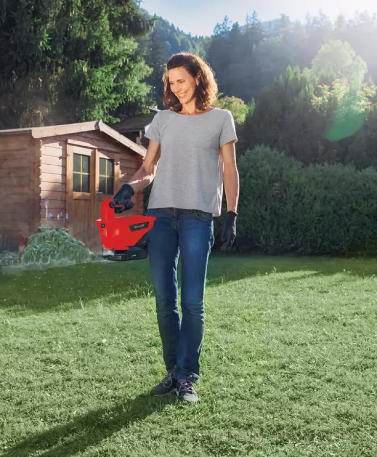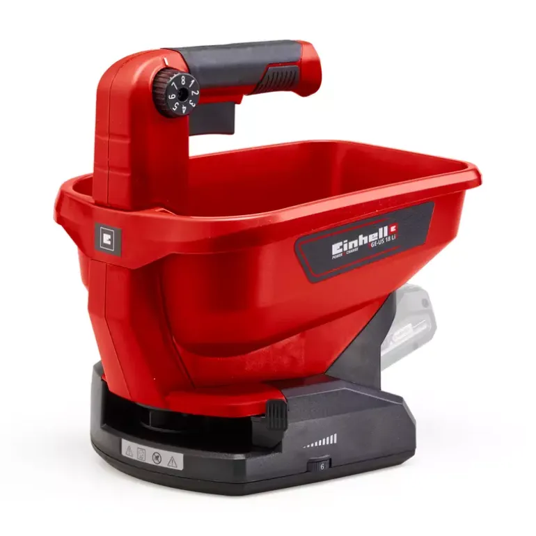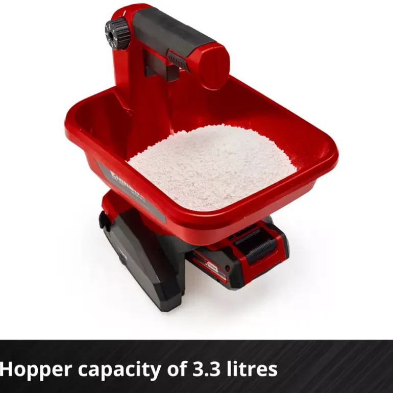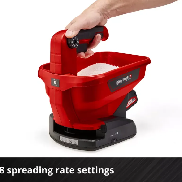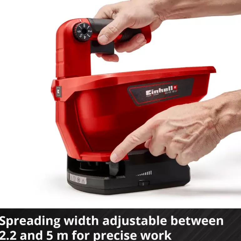 The Einhell Universal Spreader GE-US 18 Li makes many jobs in your garden or outdoor spaces a lot easier. Whether for fertilizing, sowing seeds or spreading de-icing salt in winter. As a member of the Power X-Change family, the spreader is powered with an 18 V system battery, which can be used in all Einhell devices in this range. The 6-level electronic speed control and the 8-level, ergonomic spreading volume control deliver perfectly dosed spreading performance. The container has a capacity of 3.3 liters. The spreading width is individually adjustable and can be set to a maximum of five meters, which corresponds to a coverage of approx. 15 square meters. The softgrip handle makes working ergonomic. The Einhell Universal Spreader GE-US 18 Li can be used to spread fertilizer, lawn seed or de-icing salt efficiently and easily. This means that this handy helper can be used all year round! The product is supplied without batteries or a charger. These are available separately, for example as an Einhell PXC starter set.