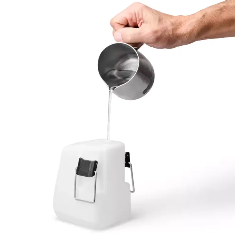 - Transparent, small tank with scale for easy control