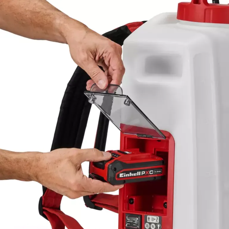 The cordless pressure sprayer GE-WS 18/150 Li – Solo is part of the powerful Power X-Change series, the high-quality lithium-ion battery system that can be flexibly combined. The pressure sprayer is ideal for gardeners who value plant protection, want to apply fertilisers evenly or chemically attack the weeds. In the case of the automatically operated pump of the back-carried pressure sprayer, no manual pressure buildup is necessary. The transparent tank with scale shows the filling level quickly and easily, and a large filling opening ensures simple and safe filling. The brass nozzle is individually adjustable. The robust spray lance is made of stainless steel, and is also equipped with a lockable control button. The Power X-Change battery is covered to protect it from water getting in. Battery and charger from the series are not included and can be purchased separately, for example as a practical starter set. The high-quality Power X-Change batteries can be combined with all PXC devices.