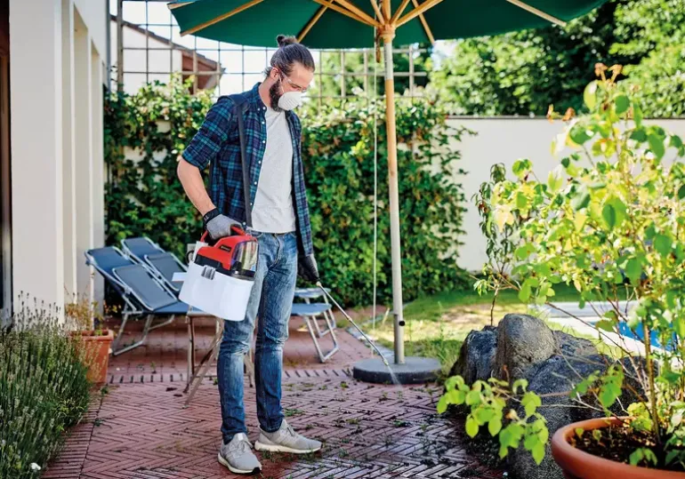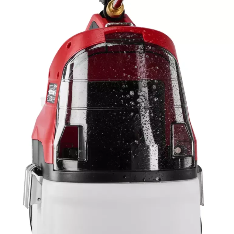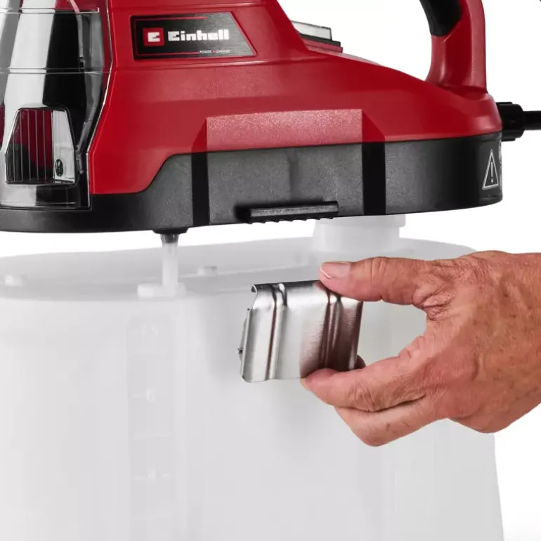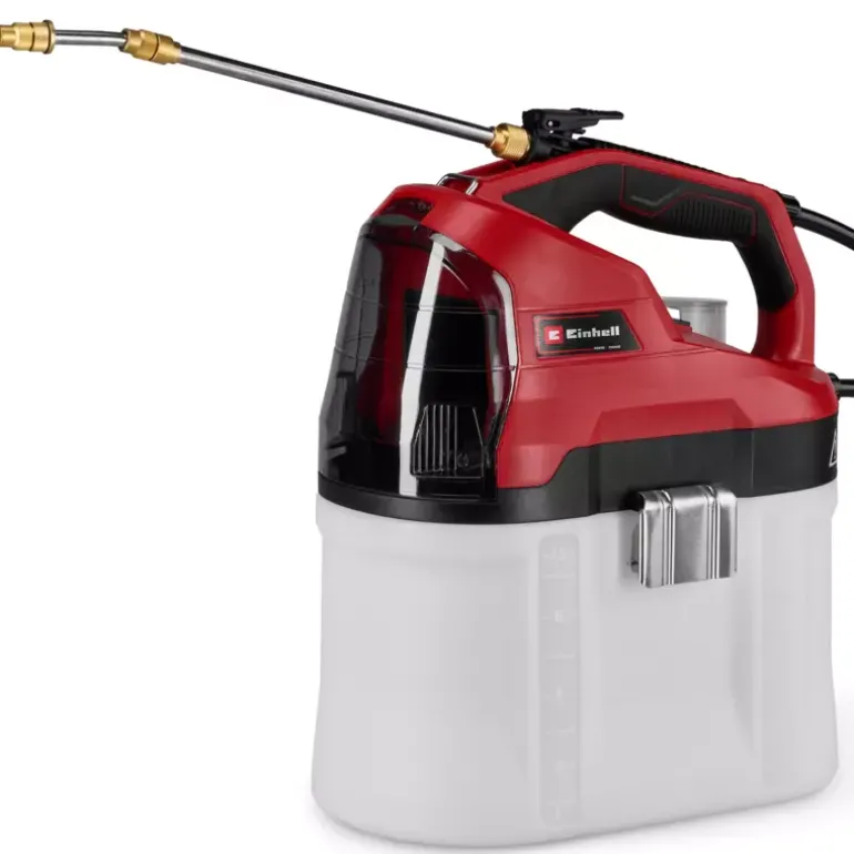 The Einhell cordless pressure sprayer GE-WS 18/75 Li-Solo is part of the Power X-Change family with limitless flexibility. Any battery in the range works with any Power X-Change tool. The pressure sprayer is a convenient accessory to help achieve lush greenery in the garden and assists in the application of pesticides, fertilisers and herbicides. The pressure sprayer is equipped with an automatic pump that delivers 2.5 bar and thus pumps up to 1 litre per minute – manual pressurisation is not needed. The scale markings on the 7.5 litre transparent tank mean the level can be checked with just a glance. The large metal brackets on the tank are designed for easy opening and closing. The brass application nozzle is adjustable, and the telescopic stainless-steel spray lance features a lockable control button. The padded shoulder strap ensures comfortable use of the tool and avoids fatigue. The battery cover provides protection against splashes of water. Batteries and chargers are available separately, for example in a convenient starter set.