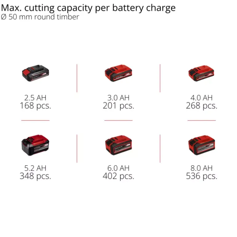 - High-quality guide bar and chain for high cutting capacity