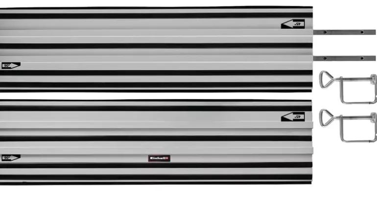 The Original Einhell guide rail Alu 2 x 1000 mm is an ideal aid for making clean, professional and safe cuts with hand-held circular saws. It is compatible with all Einhell (cordless) hand-held circular saws and plunge saws. The aluminium guide rail enables precise and straight cuts while offering increased safety. Even angle cuts pose no problem with the guide rail. The slideway lining ensures that the machines run easily, while the splinter guard facilitates clean cutting edges. A connecting element ensures that the two rail sections are exactly straight. Pressure-sensitive adhesive tapes make the underside non-slip.