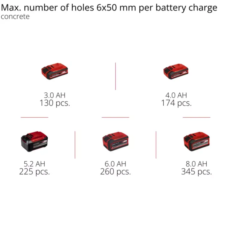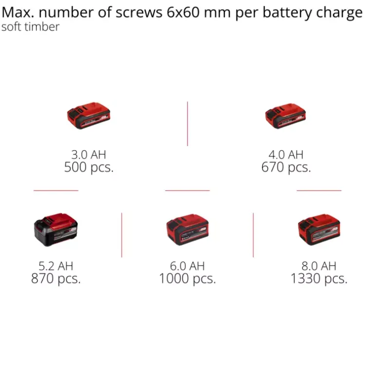 - Recommendation for optimum results: 3.0 Ah battery & higher