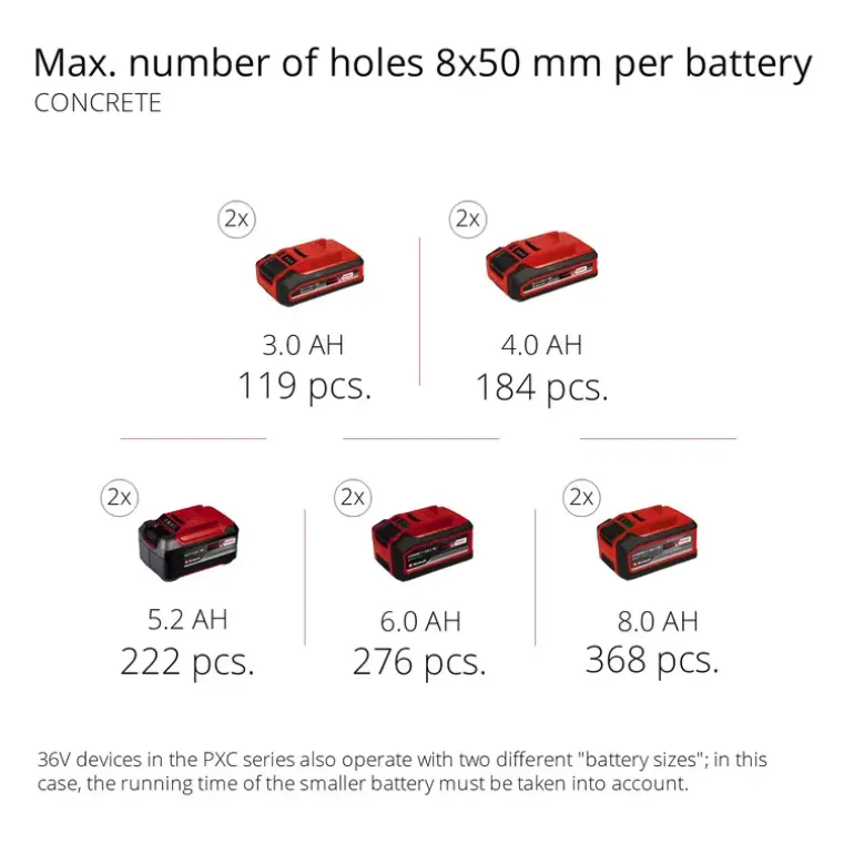 - Recommendation for optimum results: 3.0 Ah battery & higher