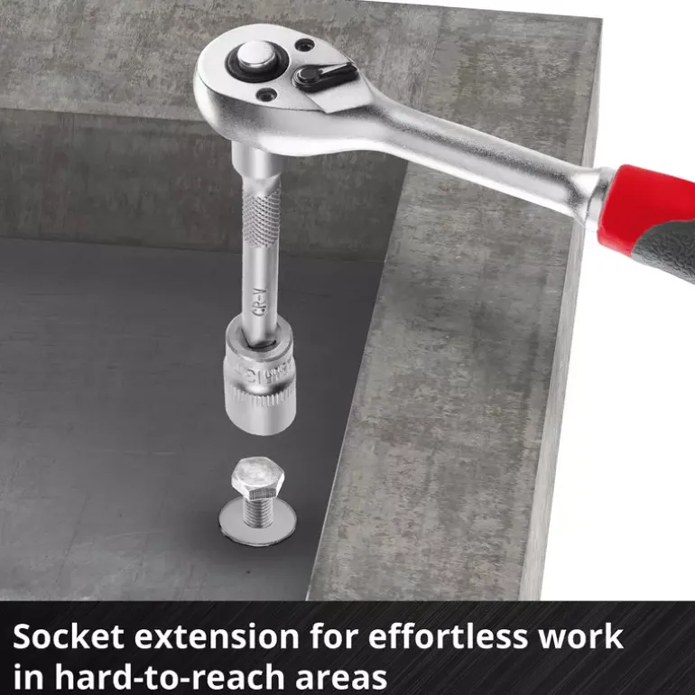 - 1x socket extension (75 mm) made of CV steel, matt chrome-plated