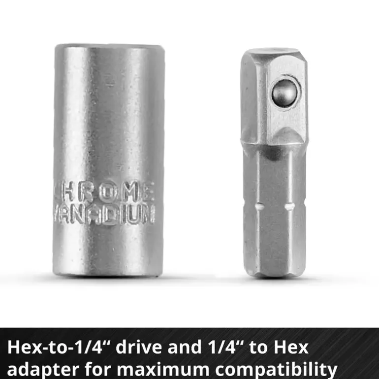 - 1x adapter 1/4″ to hex drive made of robust CV steel, satin finish