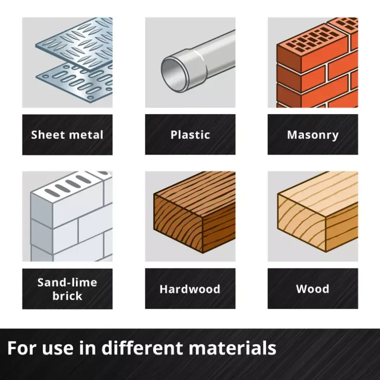 - 8x roll-forged HSS metal drill bits (2x 3 / 2x 4 / 2x 5 / 2x 6 mm)
