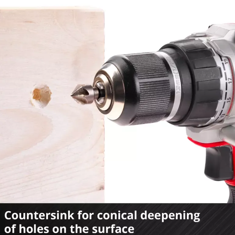 - Countersink (12mm) with E 6.3 shank made of sandblasted carbon steel