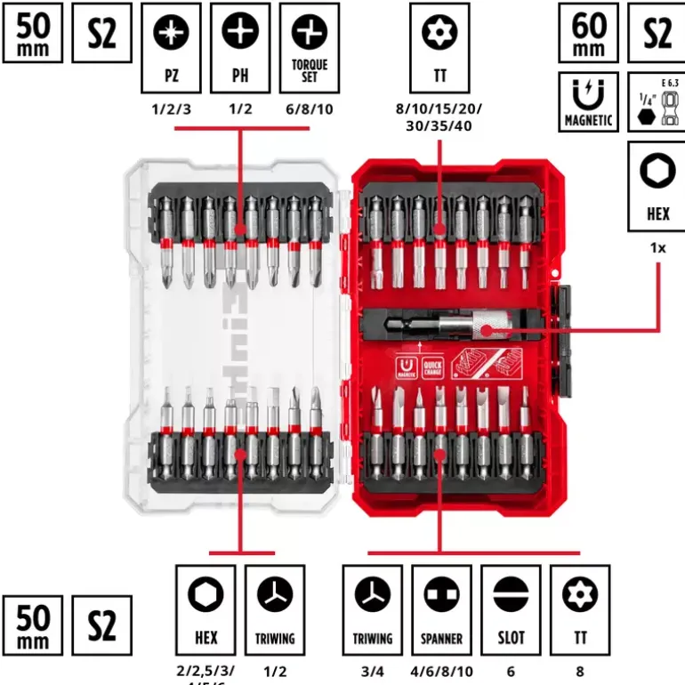 - 32x bits (50 mm) with E 6.3 shank