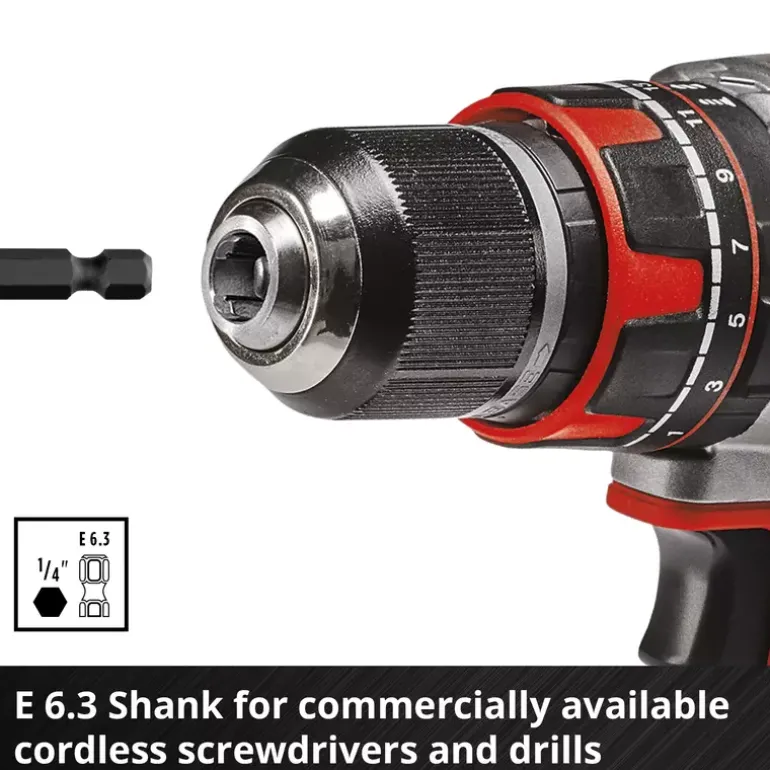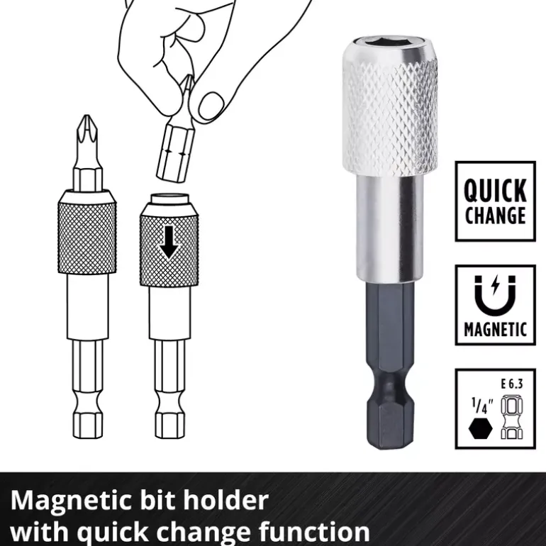 - Quick-change bit holder with E 6.3 shank made of carbon steel