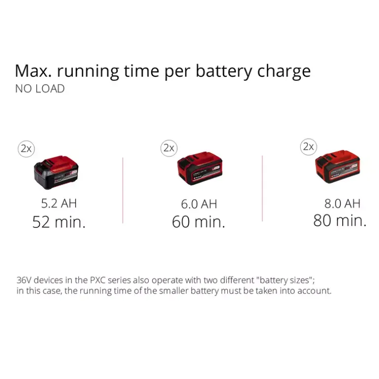 - Recommendation for optimum results: 5.2 Ah battery & higher
