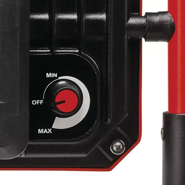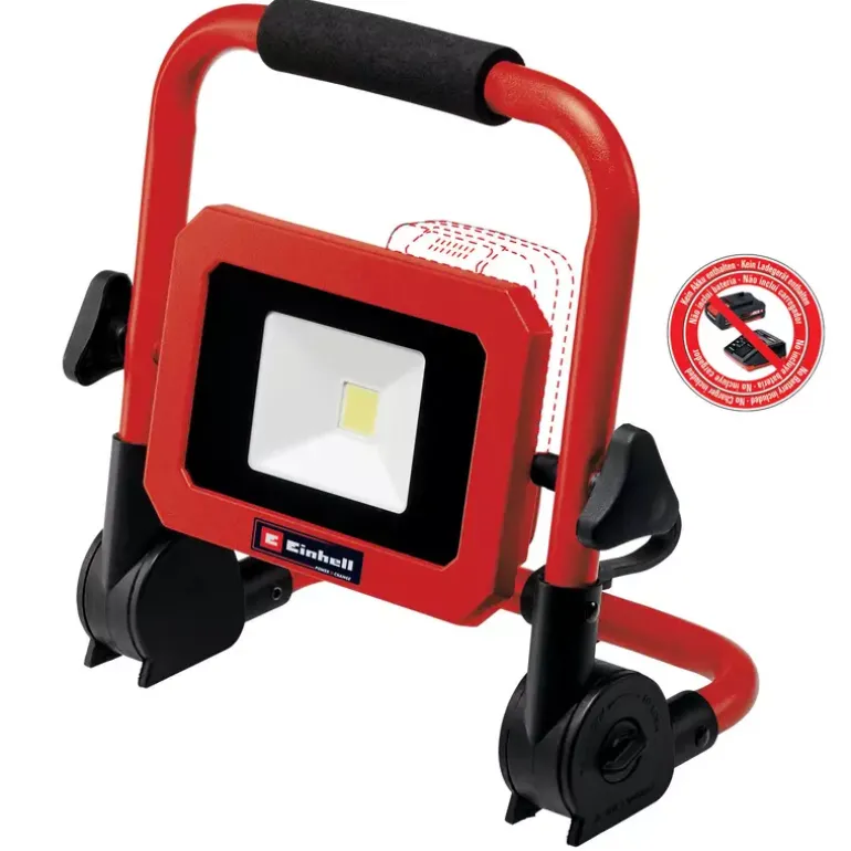 The Einhell TC-CL 18/1800 Li cordless lamp lights up the dark: Powered by an 18 V Power X-Change rechargeable battery, it has a high-performance LED to provide optimum illumination. For infinitely variable adjustment of the brightness there is a rotary dimmer, and the 360° degree swiveling lamphead provides a high level of flexibility. The practical carry-handle makes it easy to transport, and for storage in minimum space the foot can be folded in. For universal use a robust fastening hook is provided. This product comes without a battery or charger. These are available separately, for example as a practical starter set.