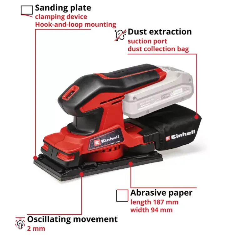 - Dust bag collects dust from sanding