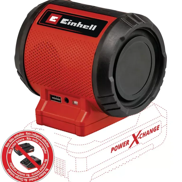 With the Einhell cordless speaker TC-SR 18 Li BT – Solo, you can easily connect to all Bluetooth-enabled devices such as smartphones or tablets. In addition, the speaker has an AUX port for connecting MP3 players or smartphones, and a USB port for charging smartphones, tablets or MP3 players. The intuitive control panel allows easy handling. As a member of the Power X-Change family, all high-quality lithium-ion batteries in the system range can be combined with the cordless speaker. Delivery does not include a battery or charger, but these are available separately, for example as a practical starter kit.