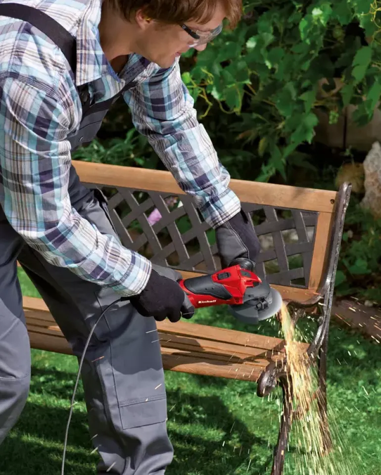 The angle grinder TE-AG 115 is a high-quality tool for experts with high demands, which fully exploits its qualities in a wide range of cutting, sanding and roughing work around the home, workshop and garage. Thanks to tool-free quick adjustment, its disc guard can be adapted to any task in no time at all, and the spindle lock allows easy and quick tool changes. The TE-AG 115 is equipped with a sturdy, flat metal transmission head that ensures optimum power transmission and low-vibration operation, both of which make it easier to work in hard-to-reach areas. Thanks to its slim housing and the softgrip both on the main handle and on the additional handle, the angle grinder offers very high operating comfort. In addition, the additional handle, which can be fixed in three positions, can be optimally adjusted to the respective workpiece and thus ensures reliable hold for comfortable, safe working. The front hole wrench is stored in the additional handle so that it is always in place. Thanks to the cable clip for fixing the coiled cable, the TE-AG 115 is always neatly and securely stowed away. The scope of delivery does not include a cutting disc.