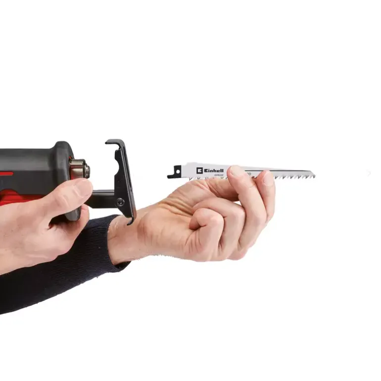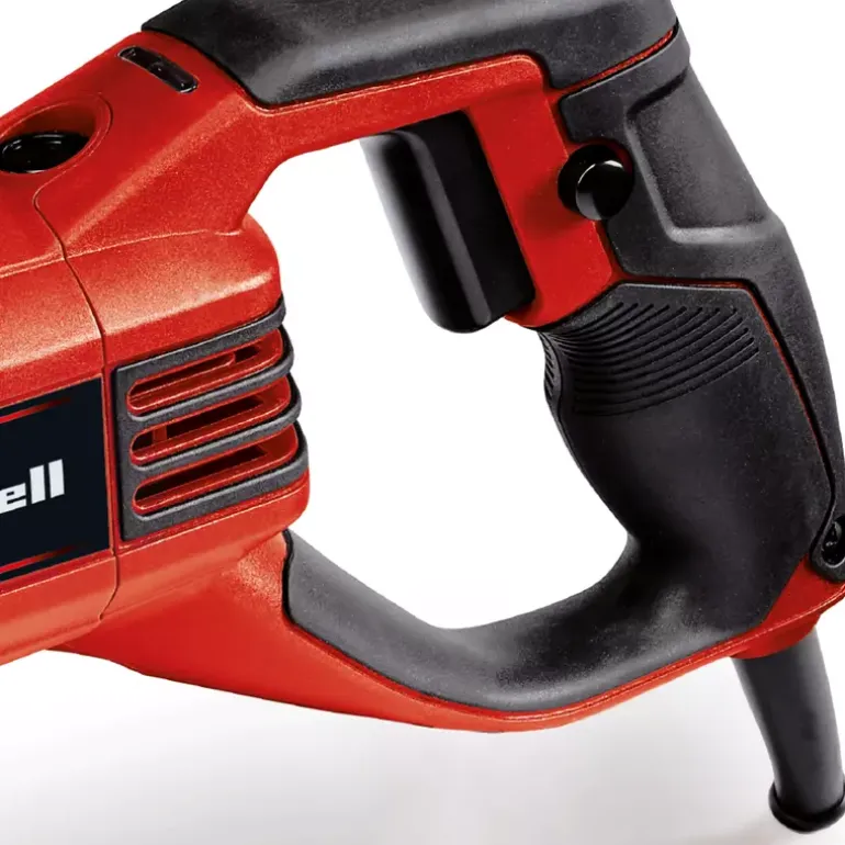 The Einhell TE-AP 950 E universal saw is designed for high-precision cutting results on wood, plastic and metal. A powerful 950 W rating and electronic stroke speed control enable the tool to be adjusted to each particular material and application. The tool can therefore be perfectly adjusted to different materials, material thicknesses and jobs. The cutting depth in wood is 0.2 m and in steel 0.02 m. The soleplate can be adjusted without any tools to make optimum use of the blade. The saw blade can be changed quickly without the need for any tools. The universal saw lies comfortably in the hand thanks to the large soft grip area, which makes it comfortable and above all safe to work with. It was developed with an ergonomic and slimline design in mind to make it easy to handle. The product is supplied complete with a saw blade for wood.
