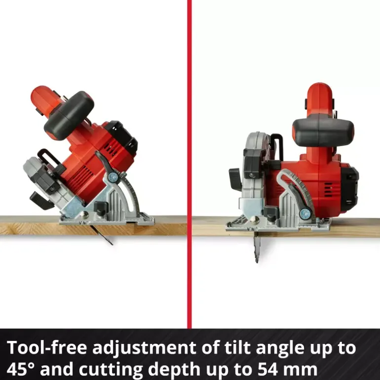 - Easy adjustment without tools (cutting depth, tilt angle)