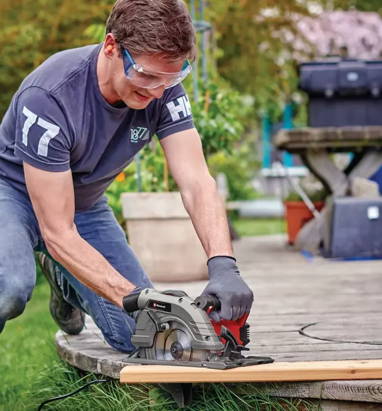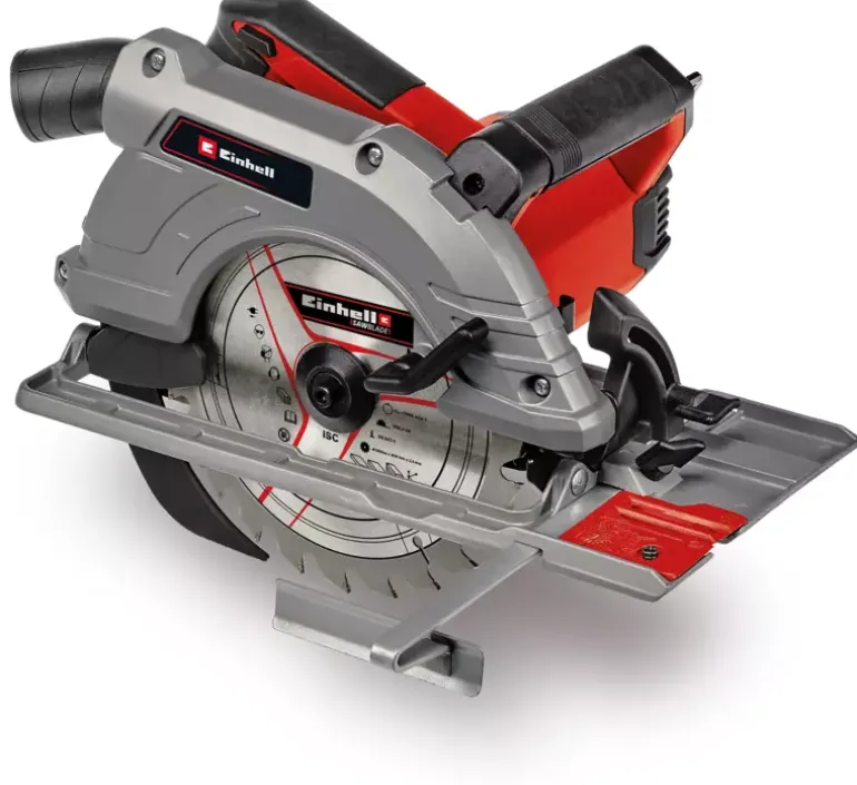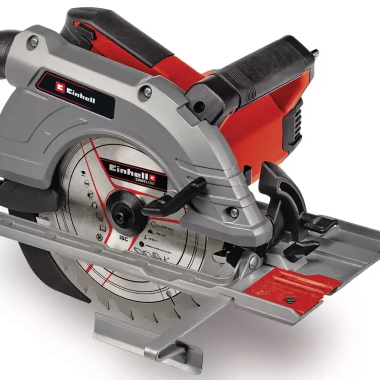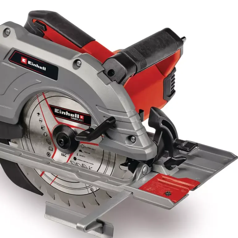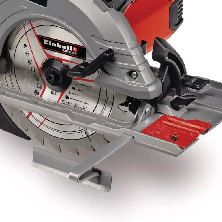 The Einhell Handheld Circular Saw TE-CS 190/1 is a practical helper on construction sites, in the workshop and in the garage. The 1.5 kW saw is suitable for all jobs involving wood – making it ideal for cutting timber beams and panels, as well as for DIY furniture construction. With its simple and tool-free adjustment of cutting depth and tilt angle, the handheld circular saw is designed both for novices and professionals. In addition, changing the saw blade could not be easier thanks to the spindle lock. The large handle makes the saw comfortable to work with and offers a safe and secure grip to prevent fatigue while working. The high-quality baseplate is made of robust yet lightweight aluminum. The saw blade itself is made of high-grade carbide – and the splitter adapts to the cutting depth, while the parallel stop enables precise and clean cuts. The dust extraction adapter helps keeps the workplace clean. High-quality LED lighting is designed to ensure optimum illumination of the cutting area. The handheld circular saw is compatible with all Einhell guide rails.