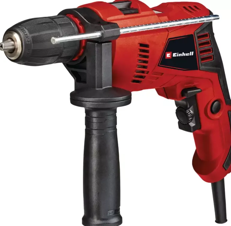 The TE-ID 500 E hammer drill is a small, handy tool which provides good service to ambitious DIY enthusiasts on screwdriving, drilling and hammer drilling jobs everywhere in the home, workshop and garage. User-friendly tool change is assured by its high-quality quick-change drill chuck. The infinitely adjustable drilling depth stop made of metal enables repeat drilling depths. The TE-ID 500 E hammer drill is equipped with ergonomic soft grips for particularly comfortable operation. Its additional handle comes with ribs for secure fastening. With the practical speed preselector you can adapt the speed of the robust, long-lasting metal gear unit at any time to the material you want to work on. Use in drill stands is also possible thanks to the 43mm clamping neck. The impact drill will be delivered with 5 additional drills for stone.