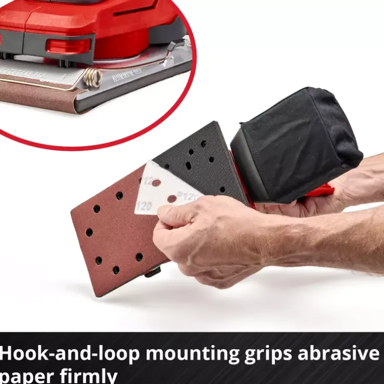 - Quick and easy sandpaper change thanks to micro hook and loop