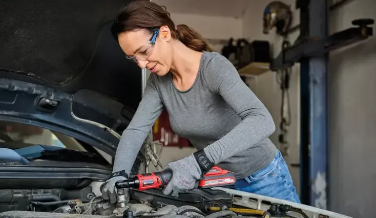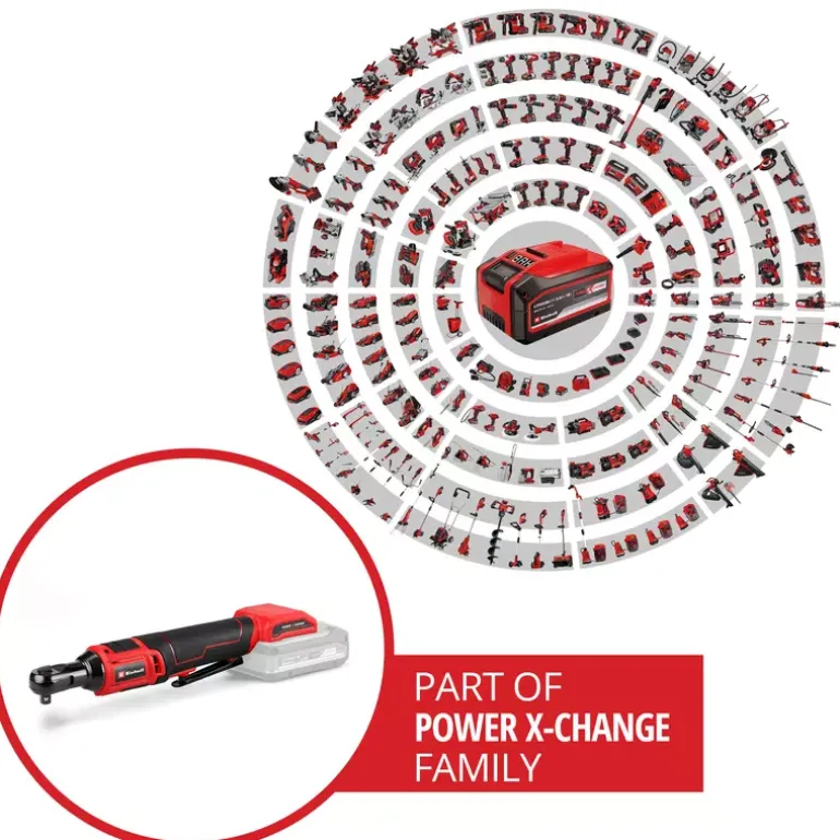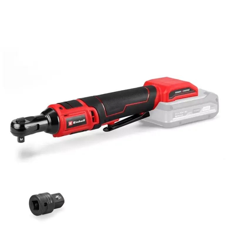 The Einhell cordless ratchet wrench TE-RW 18/60 Li-Solo is a powerful yet mobile companion in the workshop and garage. As part of the Power X-Change family, in which all the associated batteries, chargers and system devices can be combined with each other without limits, the ratchet is primarily used in the vehicle sector. Compact and equipped with ergonomically designed softgrip surfaces, the ratchet wrench is ideally suited for working in narrow or hard-to-reach areas. In addition, the battery socket can also be used as a hand ratchet. With its robust 3/8-inch tool holder and high torque of 60 Nm, the ratchet wrench can loosen and tighten even tighter screws. Switching from clockwise to counterclockwise is easy with a switch, and the continuously variable speed electronics enable the user to work according to the application. The large-area switch allows operation from different grip positions. The cordless ratchet wrench is equipped with an integrated LED light so that it can also be used in dark areas. The scope of delivery includes an adapter to a 1/2-inch tool holder. The battery and charger are not included. These are available separately.