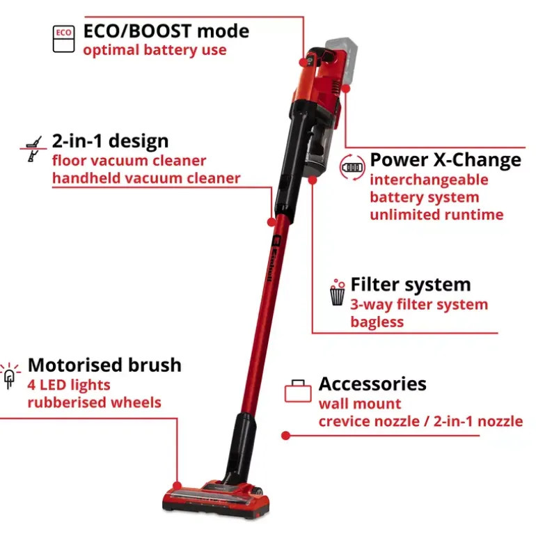 - Spotlight LEDs on floor nozzle for better visibility