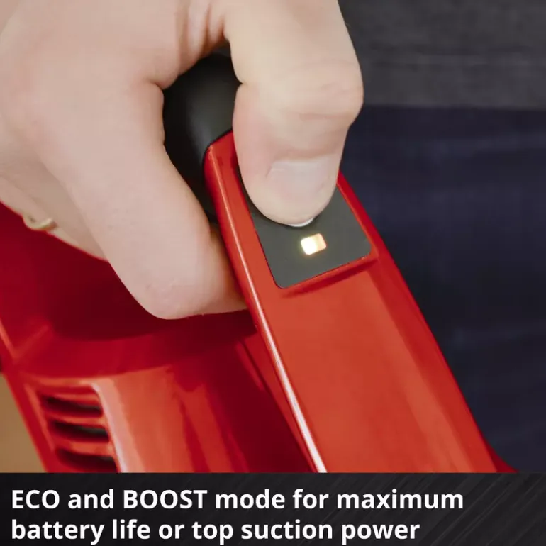 With two adjustable suction power levels, the vacuum cleaner can be adapted to different situations. ECO mode is suitable for normal dirt and longer runtime, while BOOST mode provides increased suction power for heavier dirt, for example on carpets.