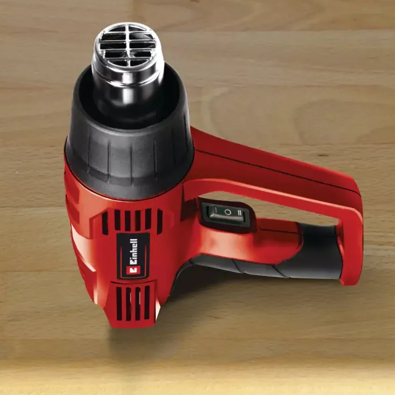 The Einhell TH-HA 2000/1 hot air gun serves up the temperature you need on all jobs in the home, workshed and garage. Whether you want to remove old lacquer and paint, heat up metal for soldering or prepare plastic tubes for fitting, this high-performance hot air gun will help you to achieve the best results on every job. A switch for selecting the temperature and air flow (setting 1: 350°C / 300 liters/min, setting 2: 550 °C / 500 liters/min) enables optimum adjustment to the material you want to process. Stationary use is also possible thanks to a sturdy base. For high user-safety there is an overheat cut-out. Numerous accessories mean you can put this hot air gun to flexible and immediate use. Delivery includes a reducer nozzle, a wide-jet nozzle, a reflector nozzle, a window nozzle and a paint scraper.