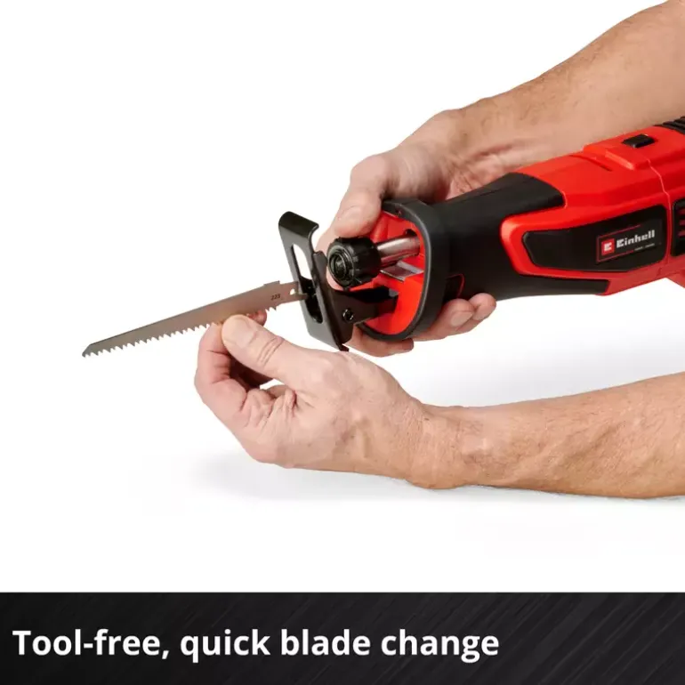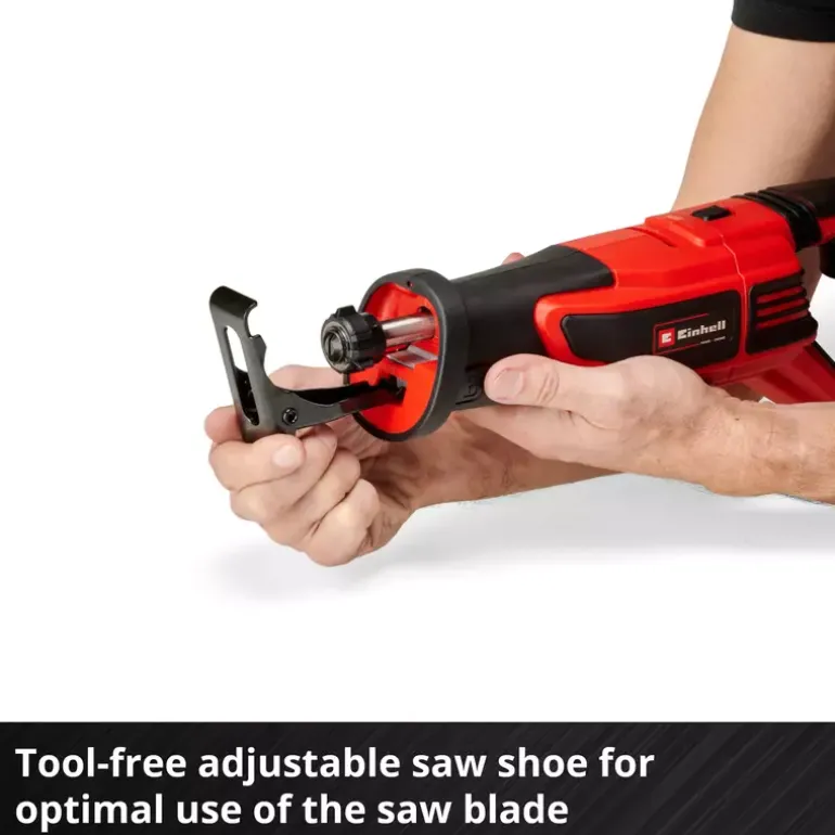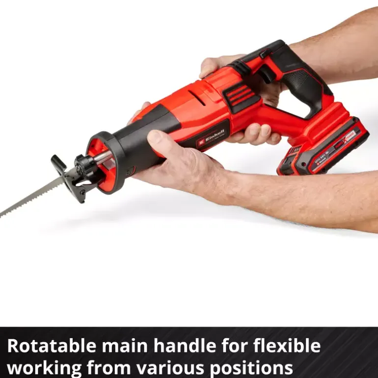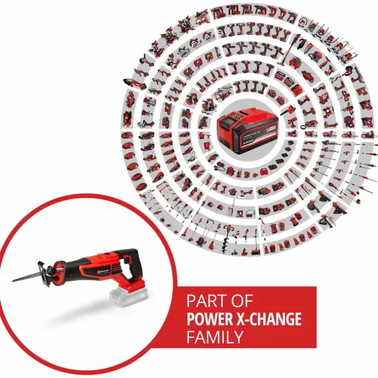 As a member of the Power X-Change series from Einhell, the Einhell TP-AP 18/28 Li BL – Solo cordless reciprocating saw offers flexible and limitless combination options. Each rechargeable battery in the system series can be combined with any PXC device. The device is powered by the Einhell brushless motor. This brushless motor offers more power and a longer running time than conventional carbon brush motors. After registering online, the brushless motor comes with a 10-year warranty. The anti-vibration function ensures low vibration during operation, while the soft grip surfaces make the cordless reciprocating saw comfortable to use and ergonomic to handle. The rotating main handle ensures maximum flexibility. The adjustable soleplate enables optimal use of the blade, and rapid, tool-less blade changes keep things simple. A high-quality wood blade from Einhell is included in the scope of delivery. This product comes without a battery or charger. For optimum use we recommend a rechargeable battery delivering 2.5 Ah or higher.