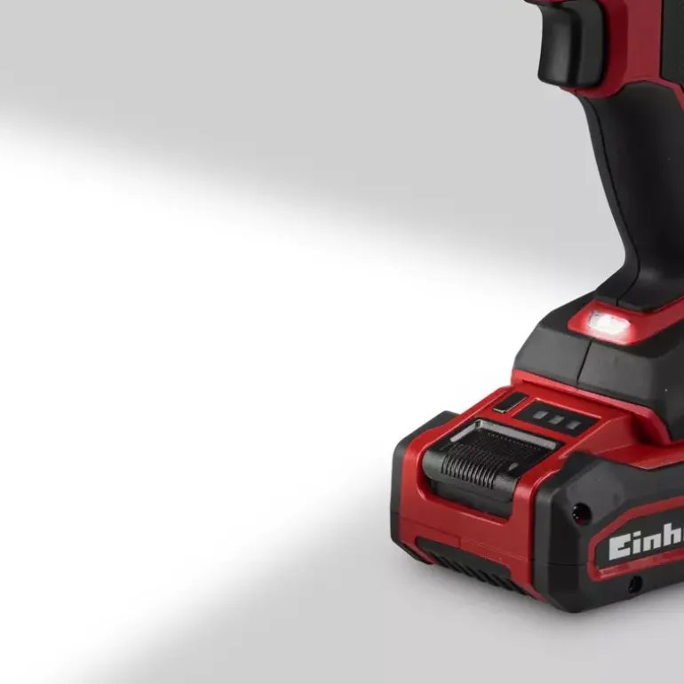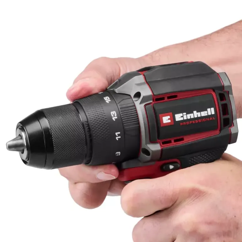 The Einhell Professional cordless impact drill TP-CD 18/50-C Li-i BL – Solo is part of the high-performance Power X-Change family, which allows batteries, chargers and tools to be combined flexibly. The tool is powered by an Einhell Brushless motor. This brushless motor provides more power and longer runtimes than a conventional carbon brush motor. Once you register online, there is a 10-year warranty on the Brushless motor. Compact, lightweight and yet powerful: Compared to similarly powerful tools, the Einhell Professional cordless impact drill has a more compact design, making it particularly flexible and easy to handle. With its 2-speed gearbox, 20 torque settings, a drilling and an impact drilling mode as well as up to 50 Nm torque, it is suitable for precise screwing, powerful drilling and also for impact drilling work in stone and masonry. The high-quality, single-sleeve 13-mm quick-release chuck made of robust metal enables quick and easy tool changes. The anti-kickback function provides even greater safety by reducing kickback and protecting against injuries in the event of blockages. The feature can be deactivated at the push of a button. Quick-stop, safety clutch and the continuous speed electronics offer additional control for every application. The ergonomic design with soft grip, the practical belt clip and the built-in LED light ensure high working comfort. The Professional cordless impact drill TP-CD 18/50-C Li-i BL – Solo is supplied without a battery and charger. These are available separately, for example as a convenient starter kit.