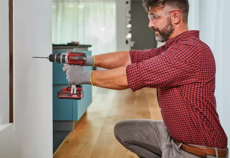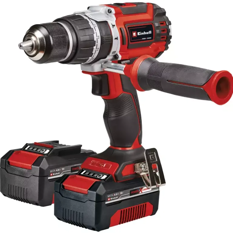 The Einhell cordless impact driver TP-CD 18/60 Li-i Brushless is powered by the Einhell PurePOWER brushless motor. This brushless motor offers more power and a longer running time than conventional carbon brush motors. After registering online, the brushless motor comes with a 10-year warranty. As members of the Power X-Change family, all batteries in the series with the high-quality lithium-ion battery cells can also be used with the TP-CD 18/60 Li-i Brushless. The impact drilling function assists the user when working on tricky materials; the impact mechanism provides sufficient force to penetrate hard, brittle material, such as stone or concrete, when drilling. In addition, the impact driver has a two-speed gearbox for powerful screwing and fast drilling. The quick-stop function allows quick and easy tool changes for use in the high-quality 13 mm metal chuck. When impact drilling, enormous forces are exerted, including on the DIYers themselves. For this reason, the user’s joints are protected by the additional handle, which ensures pleasant working thanks to the ergonomic design and softgrip. The LED light provides a good view of work areas, even in adverse lighting conditions in carcasses, arbours or hard-to-reach areas. Delivery incl. 2×4.0 Ah batteries, charger and E-Case S.