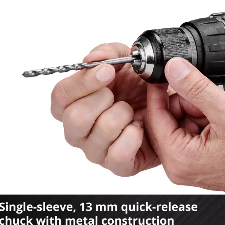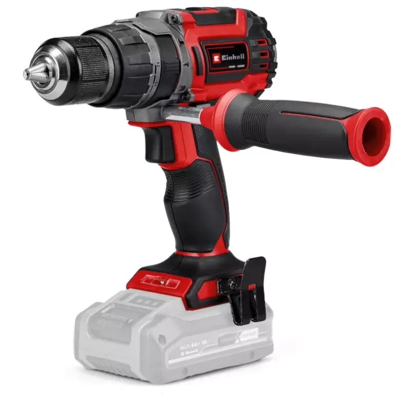 The Einhell TP-CD 18/60 Li-i Brushless cordless impact drill/driver is powered by the Einhell PurePOWER brushless motor. This brushless motor offers more power and a longer running time than conventional carbon brush motors. After registering online, the brushless motor comes with a 10-year warranty. As a member of the Power X-Change family, all batteries from the line with the high-performance lithium-ion battery cells can also be used with the TP-CD 18/60 Li-i Brushless as well. The impact drill action helps the user deal with jobs involving stubborn materials; the impact mechanism provides the power needed to penetrate hard, brittle material such as stone or concrete when drilling. For powerful driving and fast drilling, the cordless impact drill/driver also has two-speed gearing. The Quick Stop function enables tools to be changed quickly and easily for use in the high-grade 13 millimeter metal drill chuck. Enormous forces are involved in impact drilling, and these are felt by the DIY enthusiast too; the additional handle therefore helps to reduce physical strain on the user, and an ergonomic design with Softgrip ensures comfortable operation. For a good view of the work area where visibility is poor in new buildings, arbors or hard-to-reach areas there is an LED light. This product comes without a battery or charger. Batteries and chargers for the Power X-Change range of products are available separately.