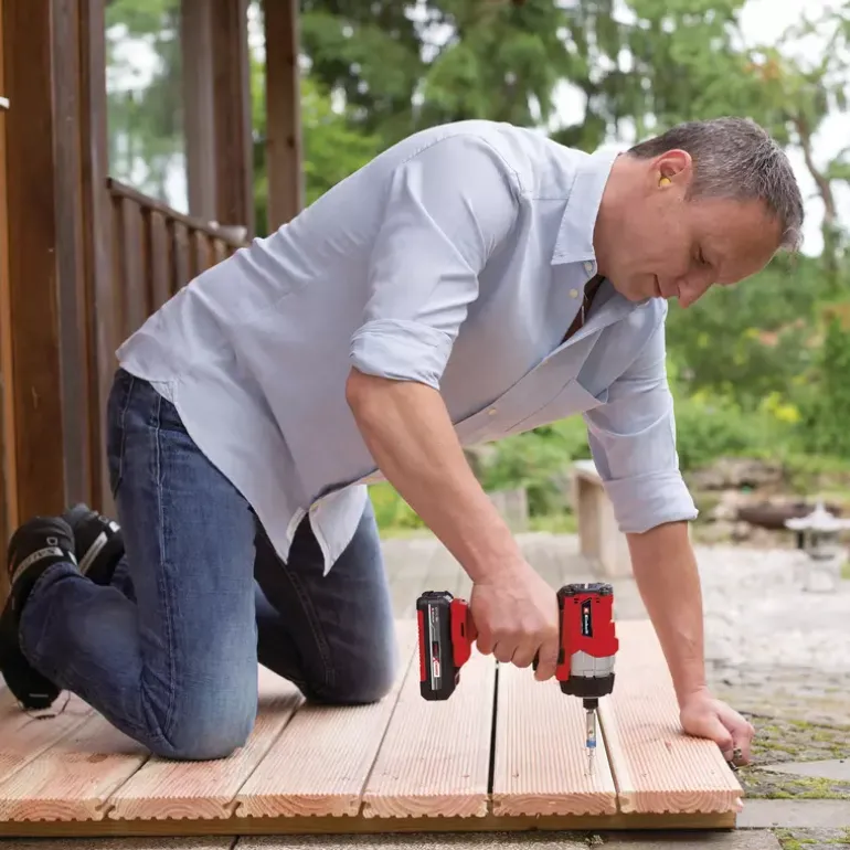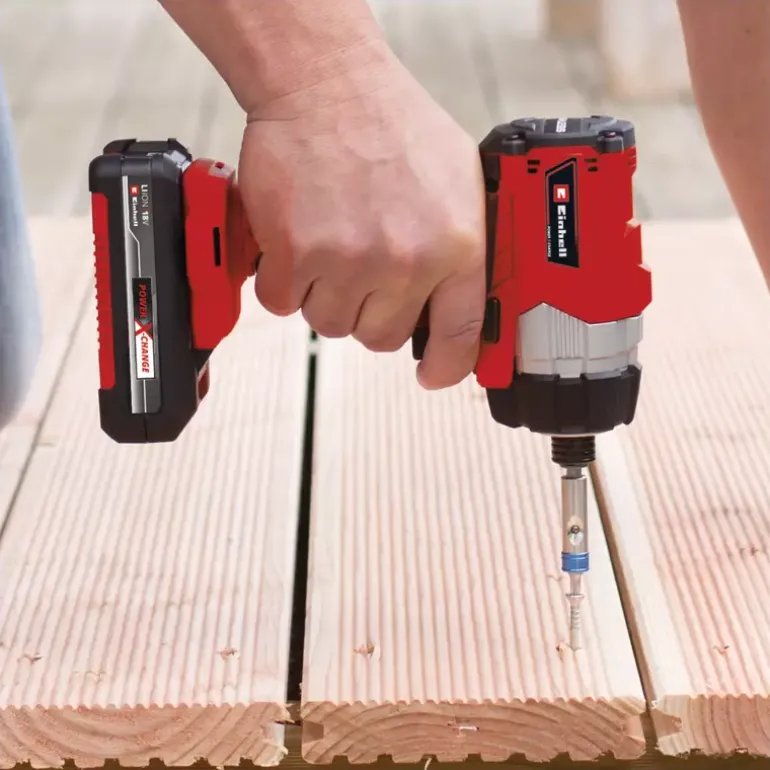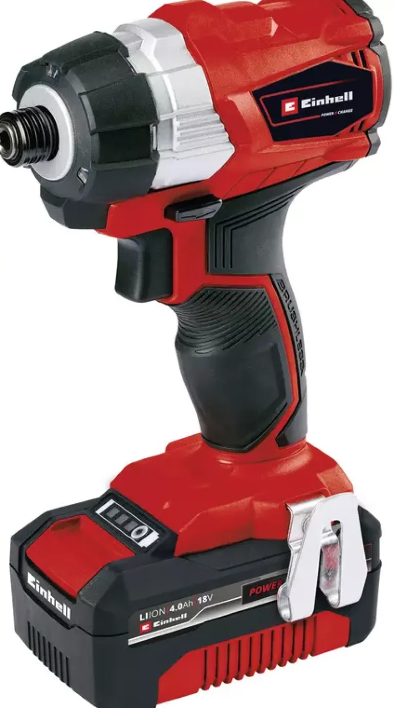 For the Einhell TE-CI 18/1 Li cordless impact driver (1×4.0Ah), both long and large screws and delicate jobs alike are no problem. With up to 2300 rpm the cordless impact driver is not only good to hold, it enables the user to achieve professional and precise results. The electronic speed control is finely adjustable for sensitive operation even on delicate jobs. The low reverse torque reduces strain on the wrists during operation. Short and lightweight in design terms, it has ergonomic Softgrip surfaces. For safe and efficient operation there is a practical belt clip. The impact driver has an aluminium housing and rubber supports to make it a robust tool. Three power LEDs ensure good allround illumination. Bits are secured mechanically in the standard hexagon mount. For optimum operation, impact-resistant bits should be used. The cordless impact driver is a member of the Power X-Change family, so it is quickly ready for work. The modern lithium-ion batteries can be used in any of the Einhell devices from the Power X-Change system series. The scope of delivery includes one 4.0 Ah PXC rechargeable battery and high-speed charger, plus a practical transport and storage bag.