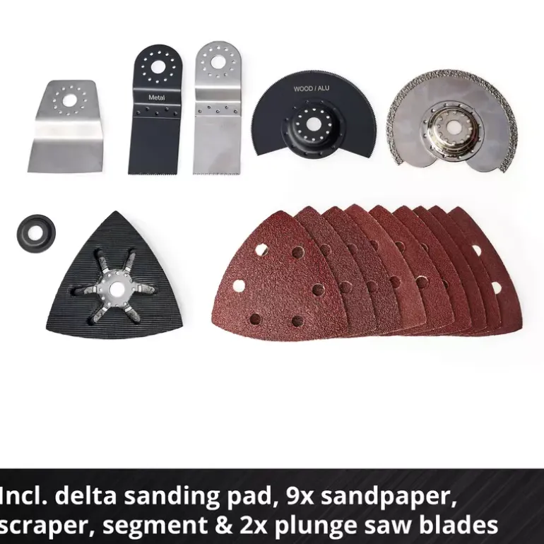 - Incl. 1x delta sanding shoe with hook-and-loop fastening