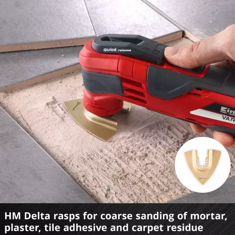 - 2x carbide-coated delta rasps (80 mm) for coarse sanding
