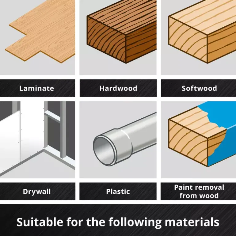 - 1x HCS half-round saw blade (87 mm) with 18 TPI for hardwood