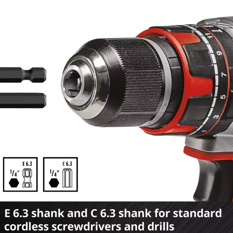 - Quick-change bit holder made of carbon steel with E 6.3 shank