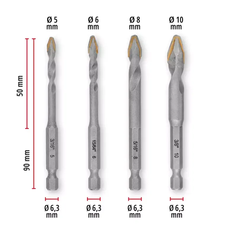- 4x ceramic drill bits (5 / 6 / 8 / 10 mm) with carbide plate